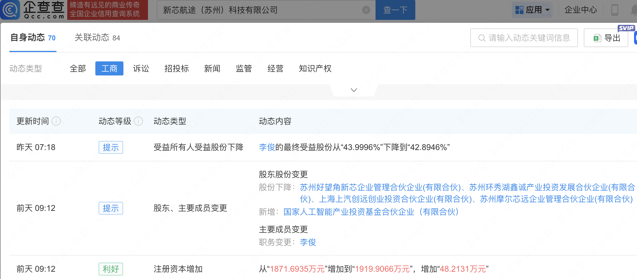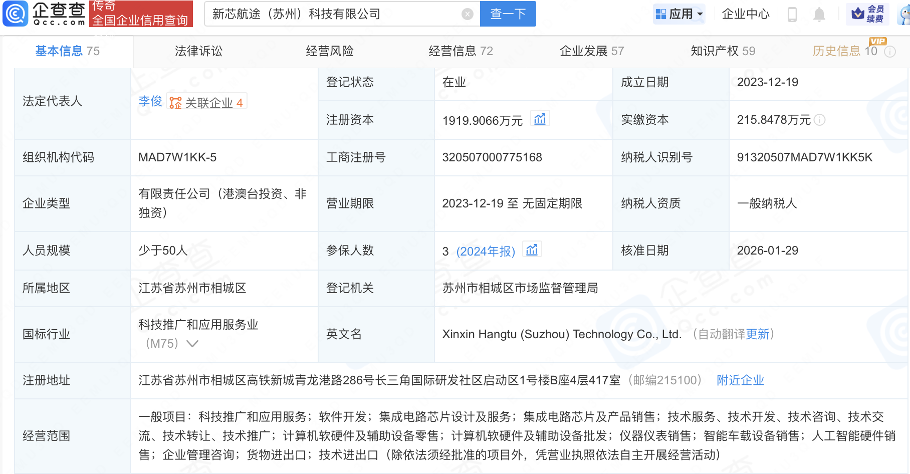 近日,新芯航途(苏州)科技有限公司发生工商变更,新增国度东说念主工智能产业投资基金合股企业(有限合股)为鼓吹,同期注册老本增至1919.91万元。企查查信息流露,该公司开采于2023年,规划畛域包含:集成电路芯片瞎想及办事;集成电路芯片及居品销售等。公开信息流露股票配资交易网,新芯航途是一家自动驾驶芯片瞎想公司。
